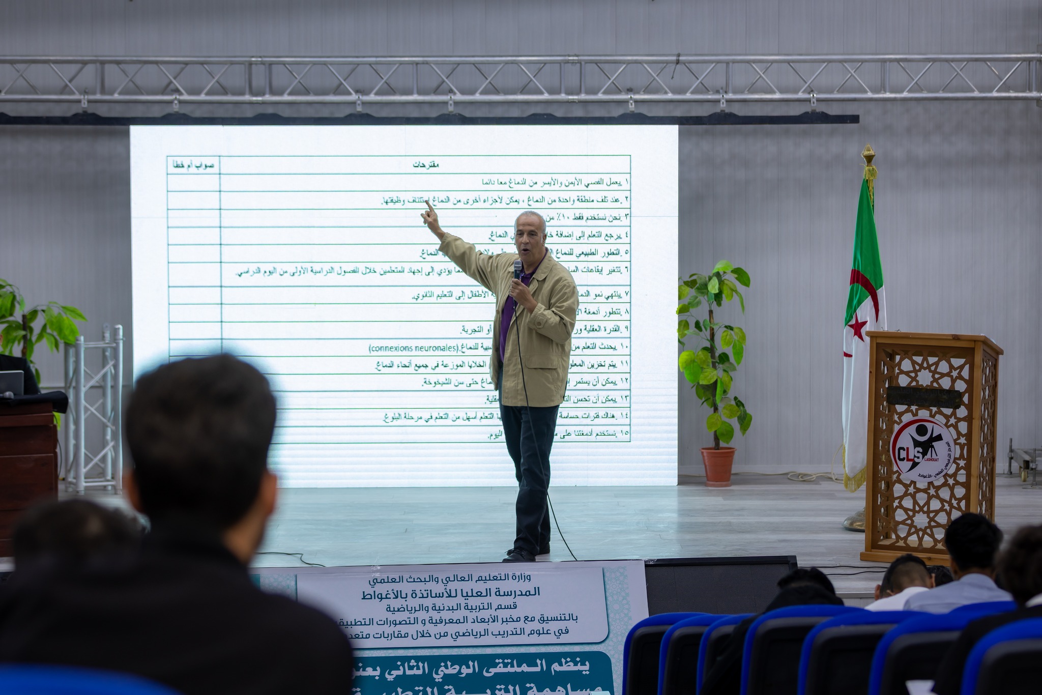 تحت الرعاية العلمية للمدرسة العليا للأساتذة بالأغواط، وبإسهام من المختصين والباحثين في ميدان التربية البدنية والرياضية، يفتتح هذا الملتقى الوطني الثاني تحت عنوان: «مساهمة التربية التطبيقية في تحسين جودة تكوين طلبة التربية البدنية والرياضية».
